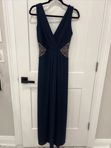 BCBG MaxAzria 'Hasani' ~ Navy Crepe Embroidered Plunge Side Slit Gown 4