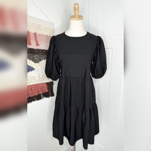ZARA Puff Sleeve Open Back Tiered Mini Dress Black Size M NWT