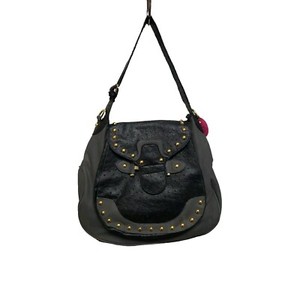 Black Gray Ostrich Like Handbag Gold Trim Nila Anthony Short Strap NWT