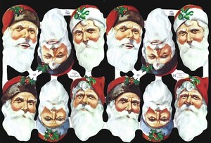 Mamelok English Embossed Scrap Die Cut - Colorful Christmas Santa's 786