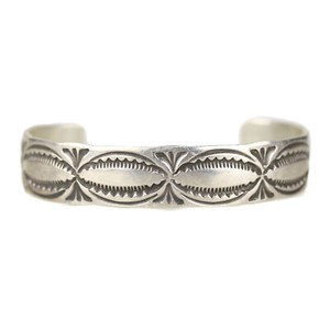 Early Navajo Wide Ingot Silver Stamped Design Cuff Bracelet