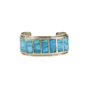 Vintage Navajo Sterling Silver Chip Turquoise Inlay Cuff Bracelet