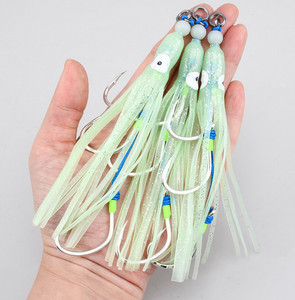 10PCS Jig Assist Hook With Squid Luminous Octopus Soft Skirts Saltwater Hook 5/0