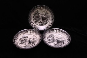 Royal Stafford Hayride Black 3 Coupe Cereal Bowls England 6 7/8 "