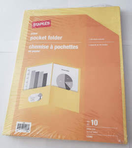Staples Paper 2 Pockets Folder 10 Pack Letter Size Yellow 13385 BRAND NEW