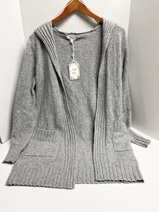 Pink Rose Heather Gray Open Hooded Cardigan With Pockets Small