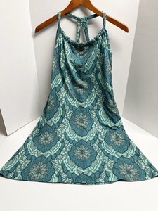 Prana Women’s S Quinn Dress Teal Geometric Pattern Shelf Bra Knee Length Dress