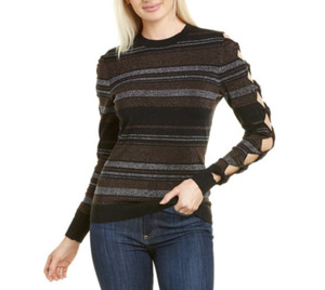 NWT Ted Baker Jelinaa Striped Bow Sleeve Sweater Black/Brown/Silver Sz 4/ US 10