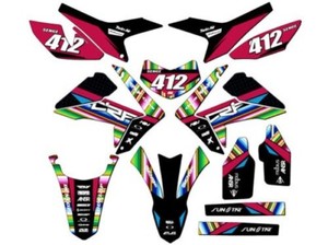 Quality graphics, condition perfect, great price, and looks beautiful on my grandsons, 2009 KX 100.