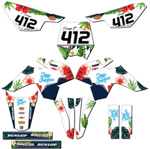 Quality graphics, condition perfect, great price, and looks beautiful on my grandsons, 2009 KX 100.