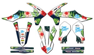 Quality graphics, condition perfect, great price, and looks beautiful on my grandsons, 2009 KX 100.