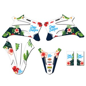 Quality graphics, condition perfect, great price, and looks beautiful on my grandsons, 2009 KX 100.