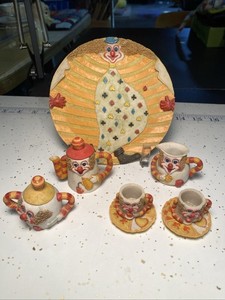 Circus Clown Tea Set Playing Card Multiple Pieces Small Clay Decorative Only