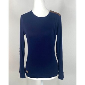 Lauren Ralph Lauren Long Sleeve T Shirt Navy Elbow Patch Zipper Sz XS