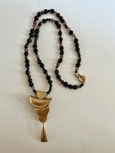 New Robert Lee Morris 24k Gold Plate Taco ShellPendant On Bead Long Necklace