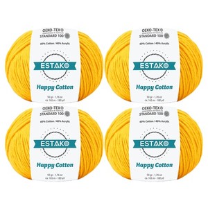 Happy Cotton, (4 Skeins Pack) 60% Cotton 40% Acrylic Yarn, Soft, Fine/Sport (...