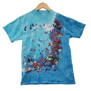 Vintage Liquid Blue Y2K Ocean Themed Tie Dye T Shirt Underwater Graphic Casual