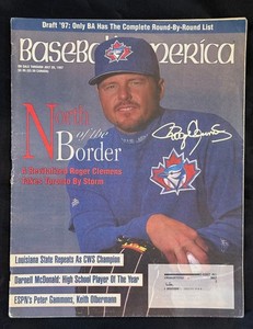ROGER CLEMENS Autograph - signed "Baseball America" magazine -BLUE JAYS!