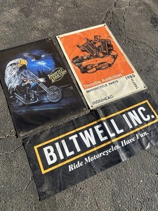 Biltwell Throttle Addiction Chopper Banners Harley Garage Shop Man Cave