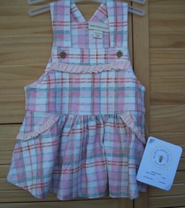 BURT'S BEES BABY nwt pink plaid overall dress~size 3M to 6M~3-6 mos~new~