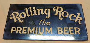 Rolling Rock The Premium Beer Vintage Glass Blue Sign Frank Len Co. Chicago RARE
