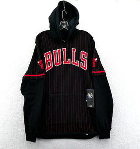 Chicago Bulls Hoodie Medium Mens Black Red Pinstripe '47 Brand Shortstop Top New