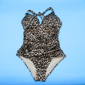 Victorias Secret Medium Leopard Padded One Piece Ruffle Halter Swimsuit Beach VS