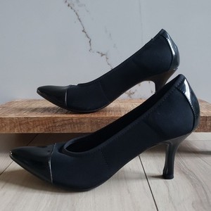 Impo Kitten Heels Womens 6 5 Black Stretch Patent Toe Cap Slip On Pumps
