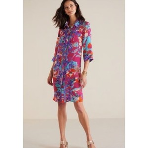 Soft Surroundings Garden Path Floral Vibrant Button Down Shirt Dress XL