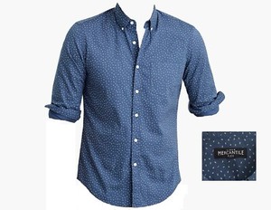 J.Crew Mens Navy Blue Ditzy Number Geek Long Sleeve Shirt. L M MSRP 54.50