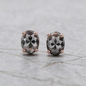 0.66 Ct Natural Oval Salt And Pepper Diamond 14K Rose Gold Engagement Earrings