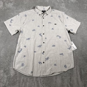 Billabong Shirt Mens Large Beige AOP Floral Button Down Short Sleeve Stretch NWT