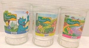 Lot of 3 1990's Vintage Dragon Tales Welch’s Jelly Jam 4” Jar Juice Glasses