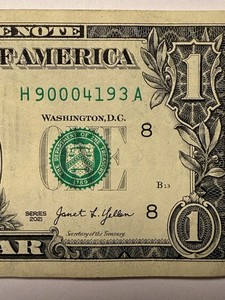 Three In A Row 0s Fancy Serial Number H90004193A One Dollar Bill Series 2021 $1