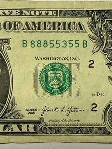Trinary 1 Dollar Bill H81218221B 1s 2s 8s District 8 Fancy Serial Number 2021 Yr