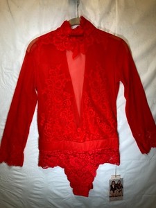 We Are HAH Take Hah Bow Bodysuit Reversible Red Lace Womens Large