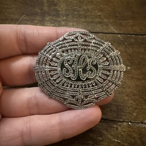 Vintage Large Sterling Silver Marcasite Monnogram Brooch Pin