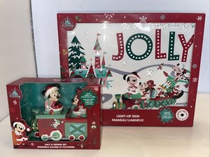Disney Parks Holiday Mickey Christmas Train Light Up Sign And Salt & Pepper Set