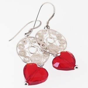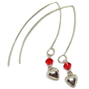 Sterling Silver Heart & Red Swarovsky Crystal Valentine Earrings By SoniaMcD