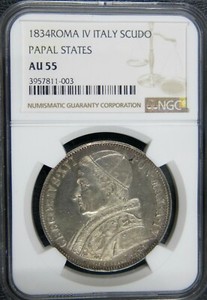 Italy Papal States Scudo 1834 Roma Gregory XVI. NGC AU 55