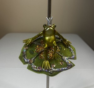 Glass Princess Frog on Fabric Lily Pad Christmas Ornament 4”