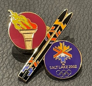 2002 Salt Lake City Utah Olympics Pin Skis Skiing Torch