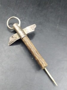 Unusual Vintage Stick Pin With Wood ? Unknown Curio Silver Touch Wood Good Luck