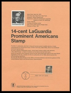 USA SOUVENIR PAGE 7203 Sc.#1397 14c FIORELLO LaGUARDIA- PARSONS WATERMARK