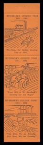 1961, RIVERBANK, CALIFORNIA'S GOLDEN YEAR BKLET PANE - RED ON ORANGE, SHINY GUM