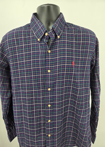 Ralph Lauren Shirt Large Blue Plaid Preppy Long Sleeve Button Down Men