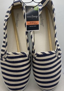 West Loop Memory Foam Women’s Sneakers Blue & White Med (7/8) Slip On NWT