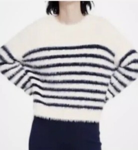 La Ligne Target Women 2X Striped Sweater Off White Blue Strip Eyelash NWT