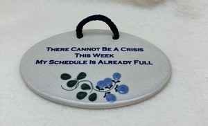 Mountaine Meadows Pottery Wall Plaque “There Can Not Be a Crisis This Week…”