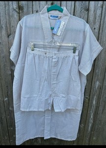 Vintage NOS Men’s Weldon Pajama PJ Set Robe Boxers Seersucker Medium Beige NEW